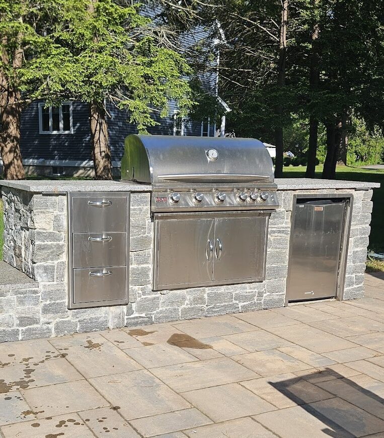 Our landscape construction services go beyond simple installation—From elegant veneer stone facades to fully equipped outdoor kitchens, our experienced team brings technical expertise and creative design to every project. Whether you’re looking to add a cozy fire pit for family gatherings, install a beautiful patio for entertaining, or build retaining walls to transform sloped terrain into usable space, we have the skills to bring your outdoor dreams to life.